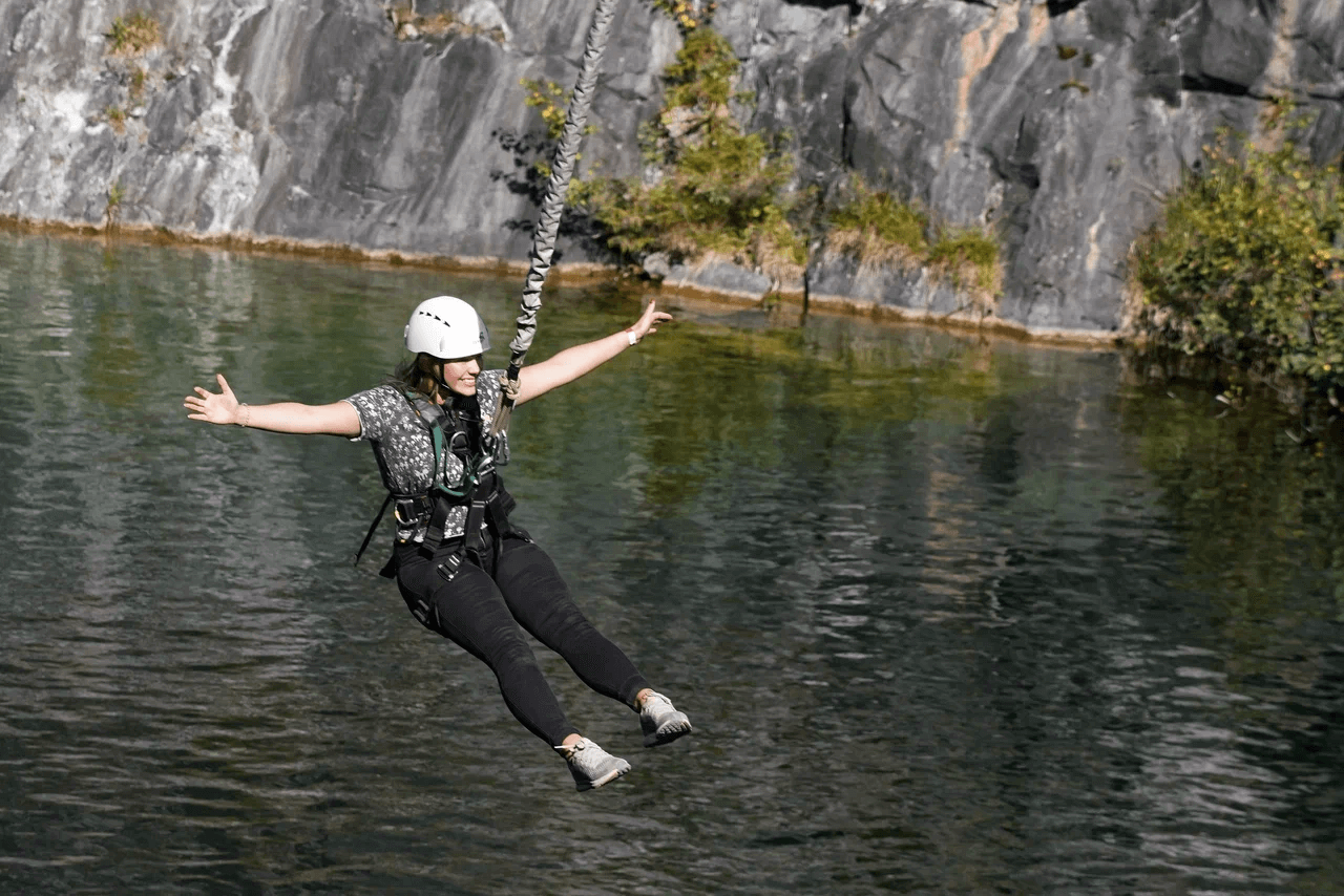 Прыгните со скального обрыва мраморного каньона и получите дозу адреналина. Нельзя пройти мимо, не посмотрев на наших бесстрашных гостей, со смотровой площадки. Прыжок напоминает свободное падение. Услуга включает полное обеспечение снаряжением и инструктаж по технике безопасности.