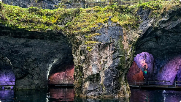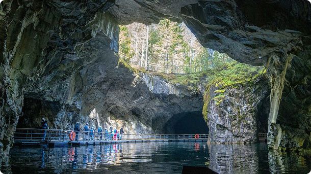 Подземная Рускеала — это сеть штолен и залов старого мраморного месторождения, превращённая в уникальный туристический маршрут. Здесь более двухсот лет назад горные мастера вручную добывали мрамор, а теперь под землёй открывается таинственное озёро, освещённое прожекторами, и величественные своды, созданные трудом человека и временем.